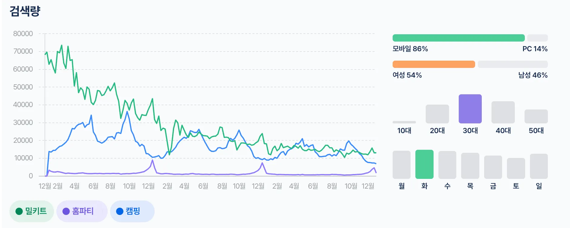 포털 검색량은 코로나 시기 정점이였고, 엔데믹 이후 감소 추세